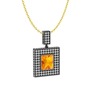 Sitrin ve beyaz zirkon 925 ayar siyah rodyum kaplama gümüş kolye (40 cm altın rolo zincir)