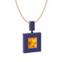 Sitrin ve lab safir 925 ayar siyah rodyum kaplama gümüş kolye (40 cm rose altın rolo zincir)