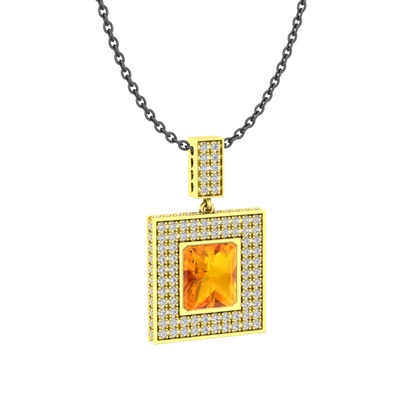 Sitrin ve pırlanta 925 ayar altın kaplama gümüş kolye (2.808 karat, 40 cm gümüş rolo zincir)