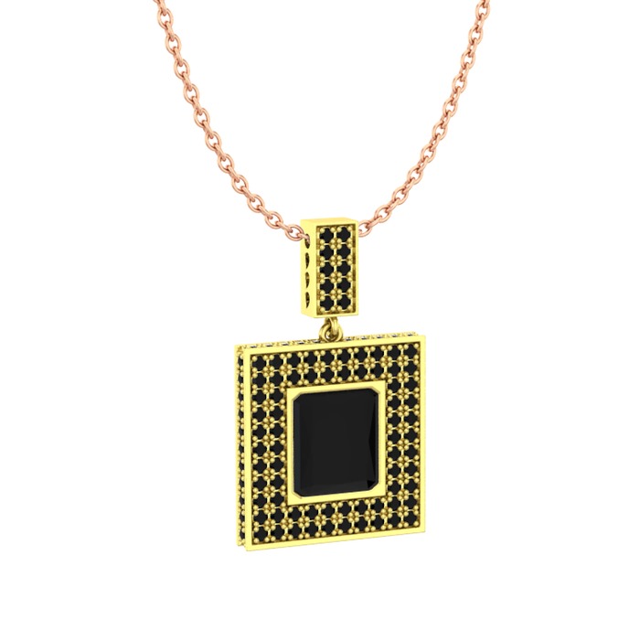 Siyah zirkon 18 ayar altın kolye (40 cm rose altın rolo zincir)