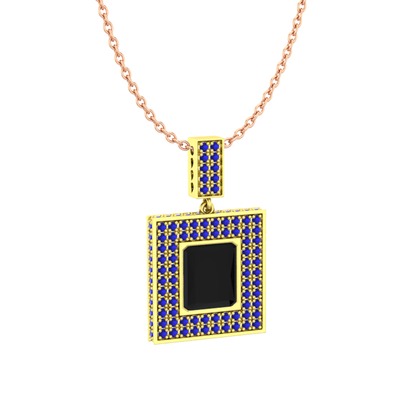 Siyah zirkon ve lab safir 14 ayar altın kolye (40 cm rose altın rolo zincir)