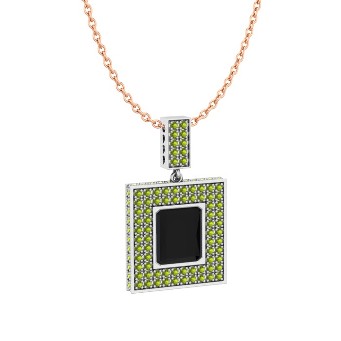 Siyah zirkon ve peridot 18 ayar beyaz altın kolye (40 cm gümüş rolo zincir)