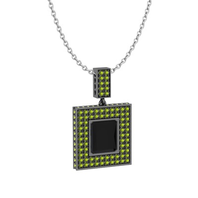 Siyah zirkon ve peridot 925 ayar siyah rodyum kaplama gümüş kolye (40 cm gümüş rolo zincir)