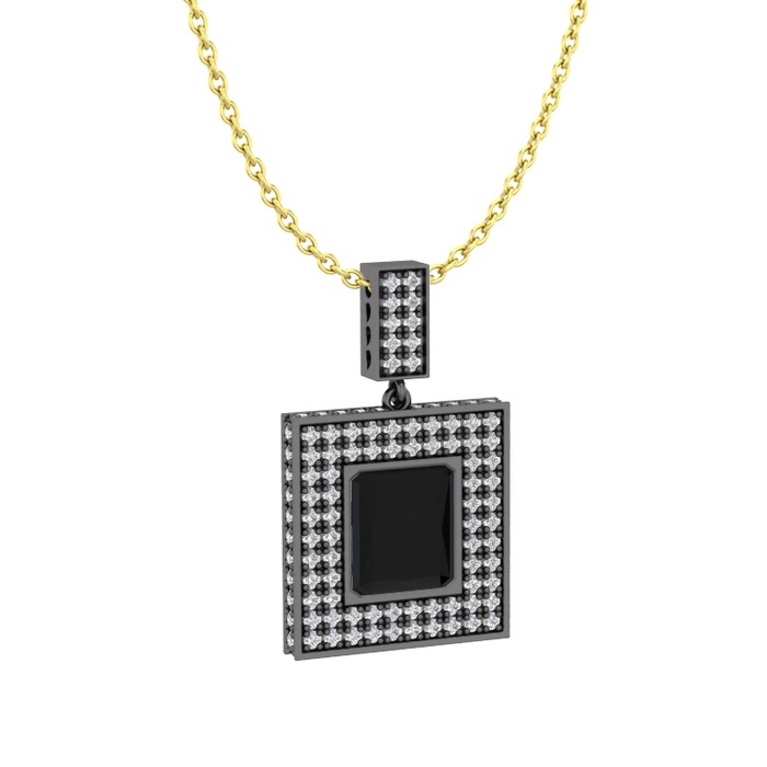 Siyah zirkon ve pırlanta 925 ayar siyah rodyum kaplama gümüş kolye (2.808 karat, 40 cm altın rolo zincir)