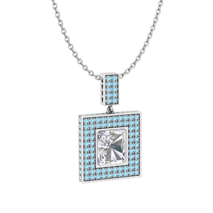 Swarovski ve akuamarin 8 ayar beyaz altın kolye (40 cm gümüş rolo zincir)