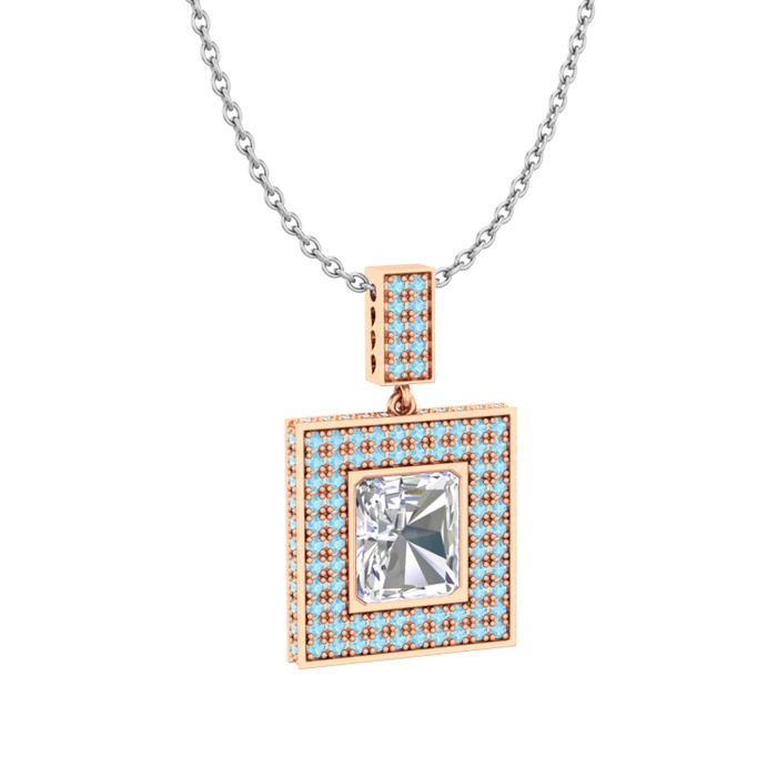 Swarovski ve akuamarin 8 ayar rose altın kolye (40 cm beyaz altın rolo zincir)