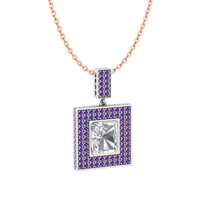 Swarovski ve ametist 14 ayar beyaz altın kolye (40 cm rose altın rolo zincir)