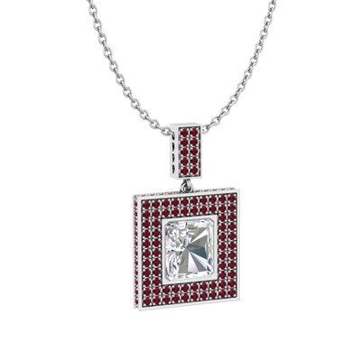 Swarovski ve kök yakut 8 ayar beyaz altın kolye (40 cm beyaz altın rolo zincir)