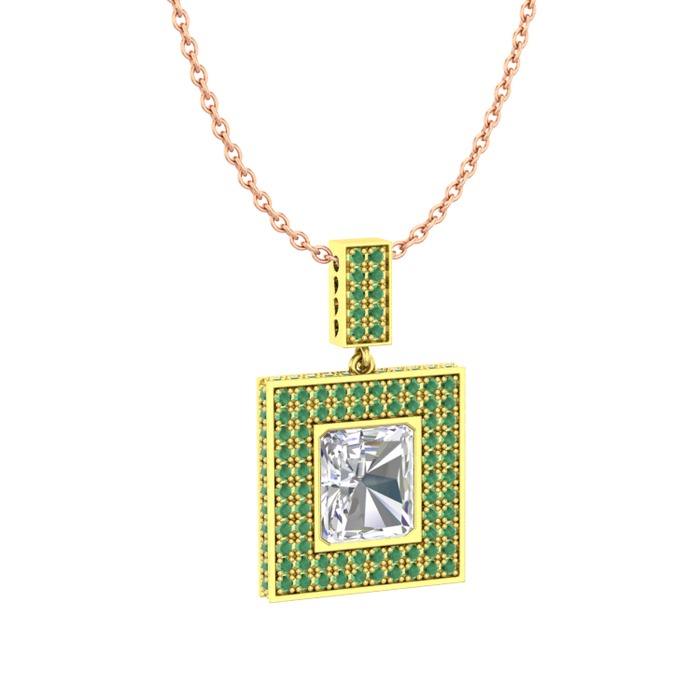 Swarovski ve kök zümrüt 925 ayar altın kaplama gümüş kolye (40 cm gümüş rolo zincir)