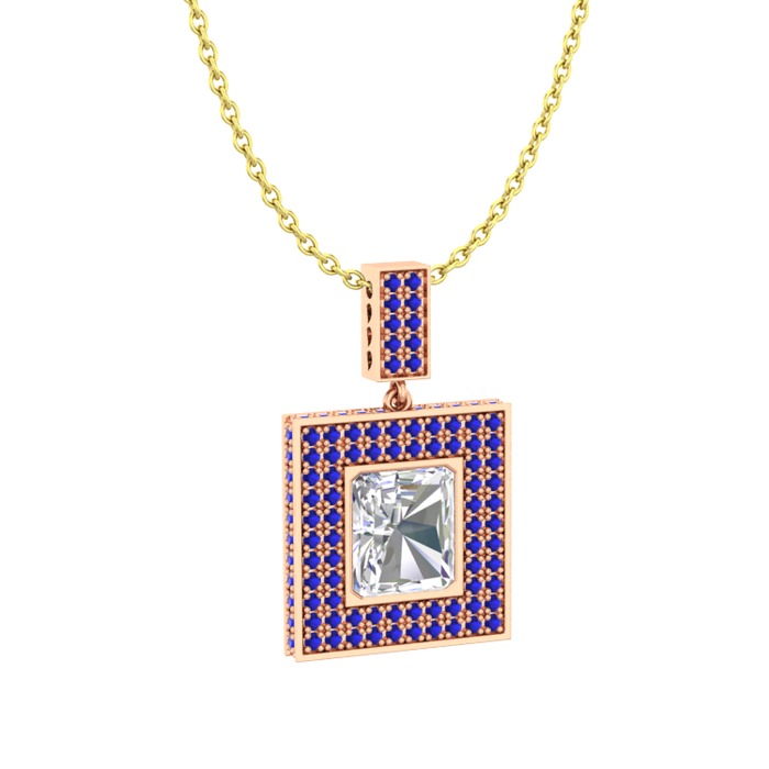 Swarovski ve lab safir 925 ayar rose altın kaplama gümüş kolye (40 cm gümüş rolo zincir)