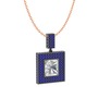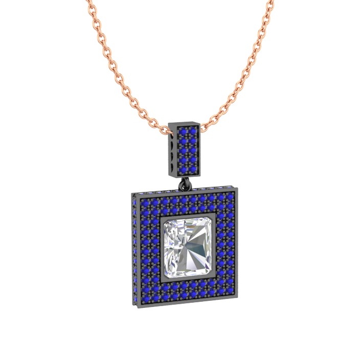 Swarovski ve lab safir 925 ayar siyah rodyum kaplama gümüş kolye (40 cm rose altın rolo zincir)