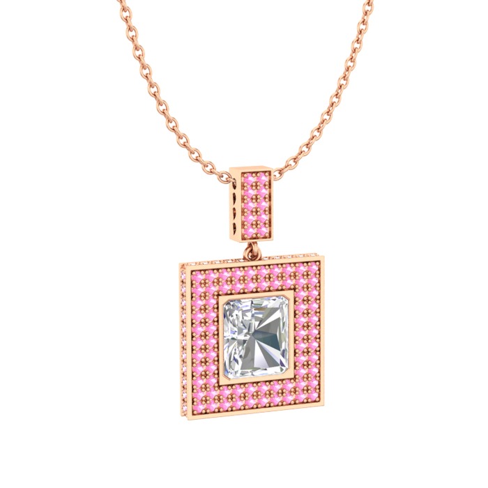Swarovski ve pembe kuvars 14 ayar rose altın kolye (40 cm rose altın rolo zincir)