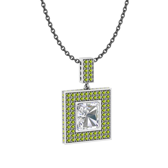 Swarovski ve peridot 18 ayar beyaz altın kolye (40 cm gümüş rolo zincir)