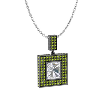 Swarovski ve peridot 925 ayar siyah rodyum kaplama gümüş kolye (40 cm beyaz altın rolo zincir)