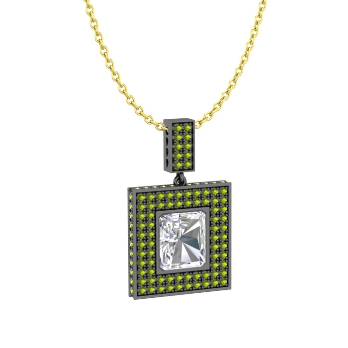 Swarovski ve peridot 925 ayar siyah rodyum kaplama gümüş kolye (40 cm gümüş rolo zincir)