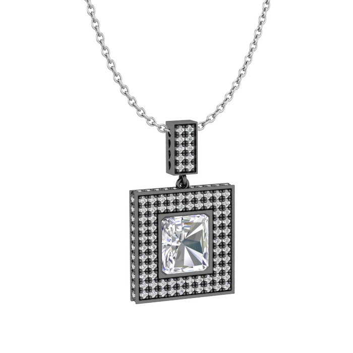 Swarovski ve pırlanta 925 ayar siyah rodyum kaplama gümüş kolye (2.808 karat, 40 cm beyaz altın rolo zincir)