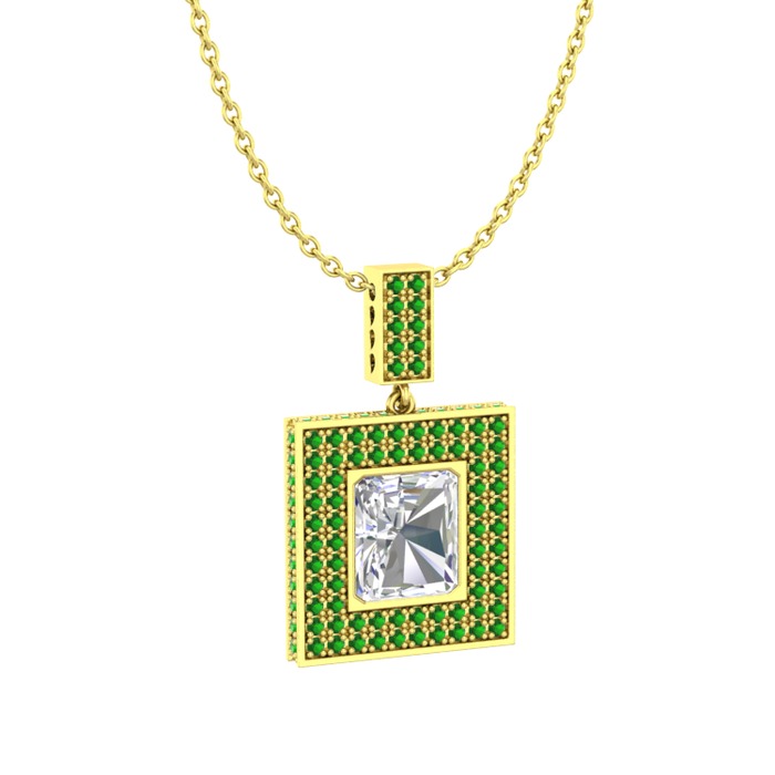 Swarovski ve yeşil kuvars 14 ayar altın kolye (40 cm altın rolo zincir)