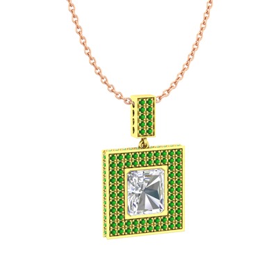 Swarovski ve yeşil kuvars 18 ayar altın kolye (40 cm rose altın rolo zincir)