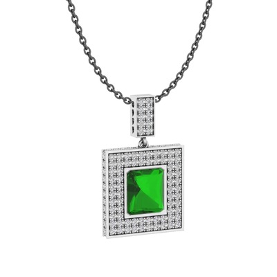 Yeşil kuvars ve beyaz zirkon 18 ayar beyaz altın kolye (40 cm gümüş rolo zincir)