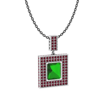 Yeşil kuvars ve kök yakut 8 ayar beyaz altın kolye (40 cm gümüş rolo zincir)