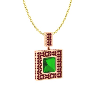 Yeşil kuvars ve kök yakut 8 ayar rose altın kolye (40 cm altın rolo zincir)