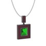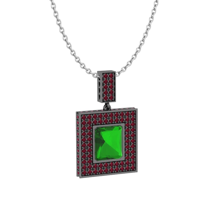 Yeşil kuvars ve kök yakut 925 ayar siyah rodyum kaplama gümüş kolye (40 cm gümüş rolo zincir)