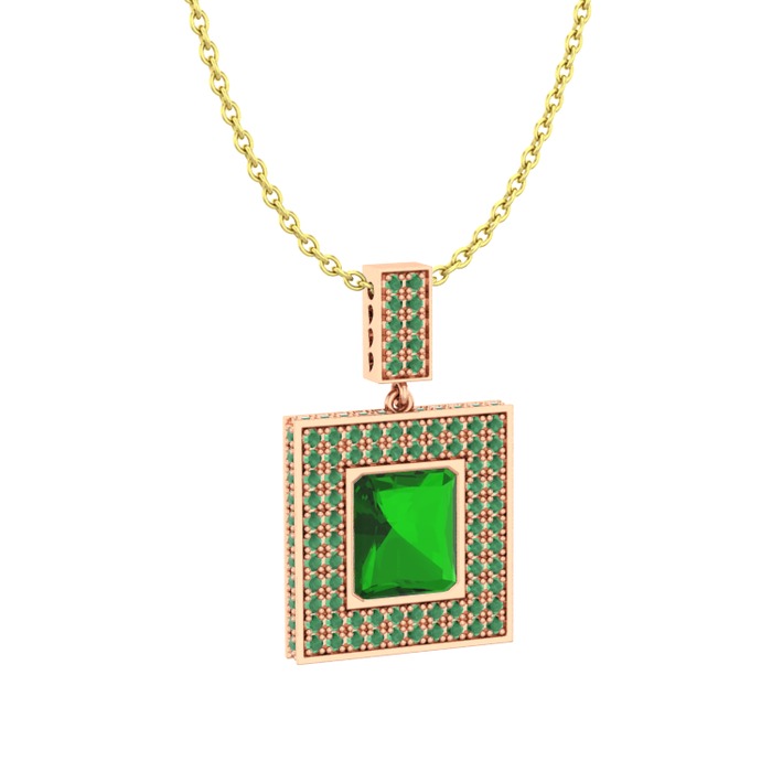 Yeşil kuvars ve kök zümrüt 14 ayar rose altın kolye (40 cm altın rolo zincir)