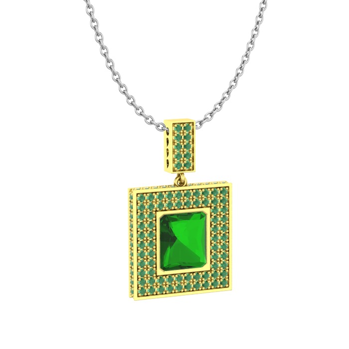 Yeşil kuvars ve kök zümrüt 8 ayar altın kolye (40 cm gümüş rolo zincir)