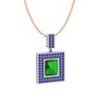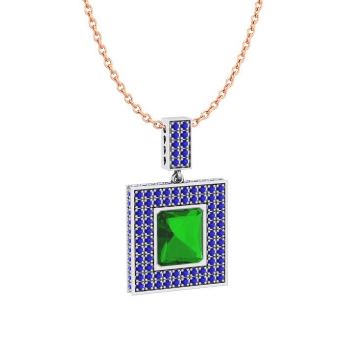 Yeşil kuvars ve lab safir 14 ayar beyaz altın kolye (40 cm rose altın rolo zincir)