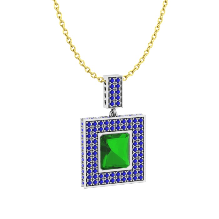 Yeşil kuvars ve lab safir 8 ayar beyaz altın kolye (40 cm altın rolo zincir)