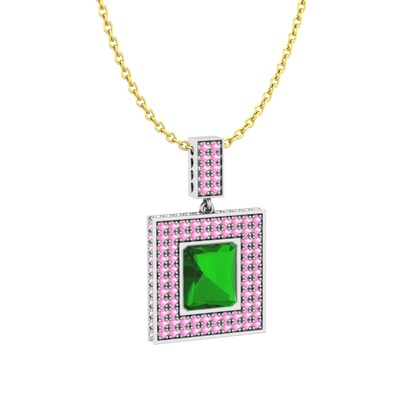 Yeşil kuvars ve pembe kuvars 925 ayar gümüş kolye (40 cm altın rolo zincir)