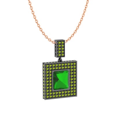 Yeşil kuvars ve peridot 925 ayar siyah rodyum kaplama gümüş kolye (40 cm rose altın rolo zincir)