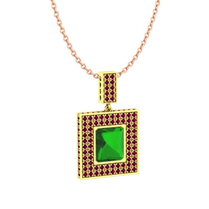 Yeşil kuvars ve rodolit garnet 18 ayar altın kolye (40 cm rose altın rolo zincir)