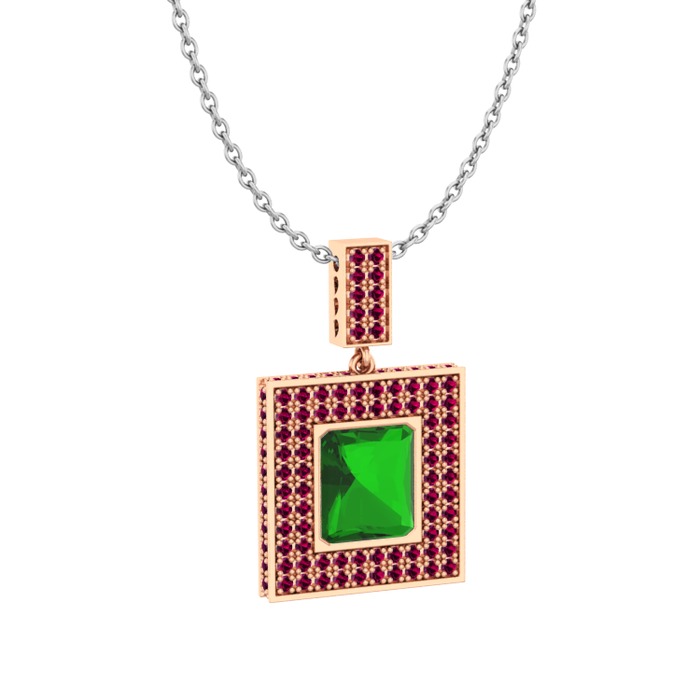 Yeşil kuvars ve rodolit garnet 8 ayar rose altın kolye (40 cm beyaz altın rolo zincir)