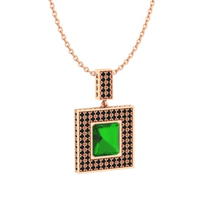 Yeşil kuvars ve siyah zirkon 8 ayar rose altın kolye (40 cm rose altın rolo zincir)