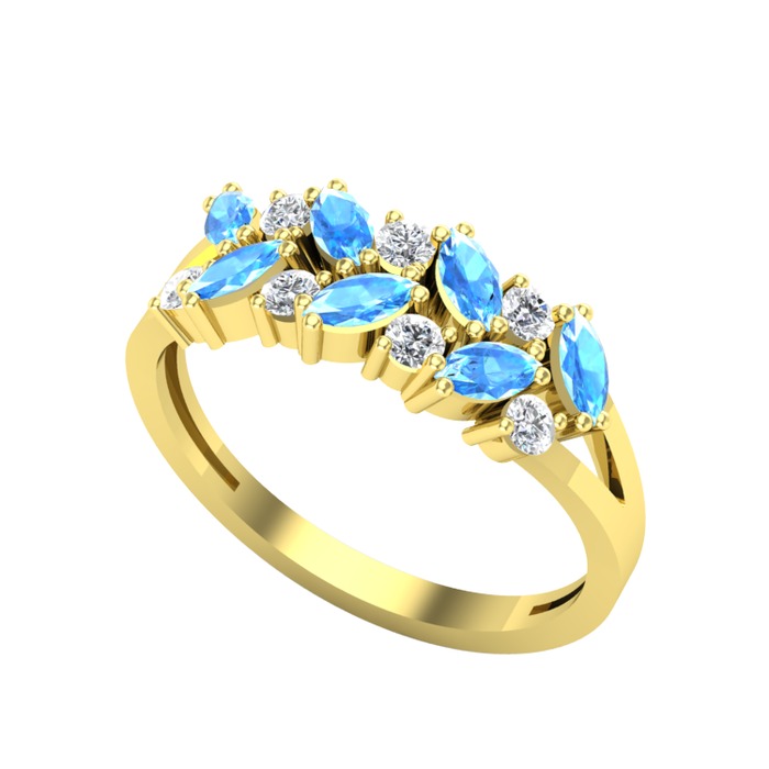 Akuamarin ve pırlanta 18 ayar altın yüzük (0.252 karat)