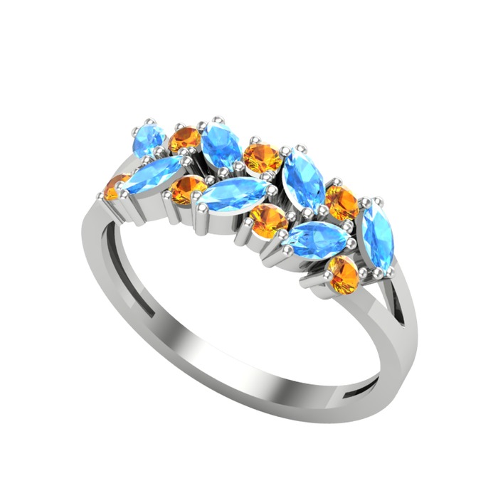 Akuamarin ve sitrin 8 ayar beyaz altın yüzük