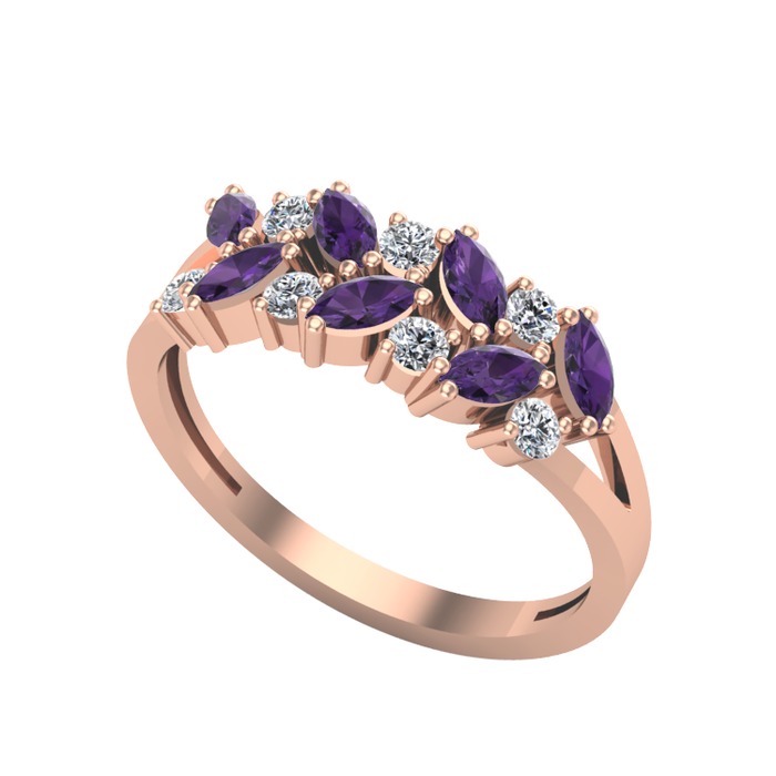 Ametist ve beyaz zirkon 14 ayar rose altın yüzük