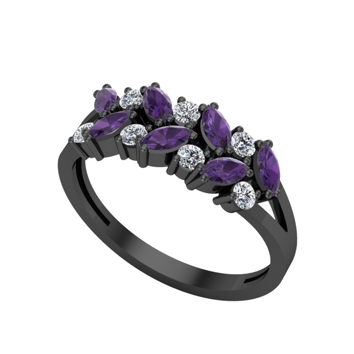 Ametist ve beyaz zirkon 925 ayar siyah rodyum kaplama gümüş yüzük