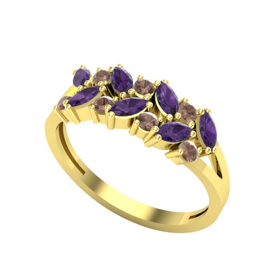 Ametist ve dumanlı kuvars 8 ayar altın yüzük