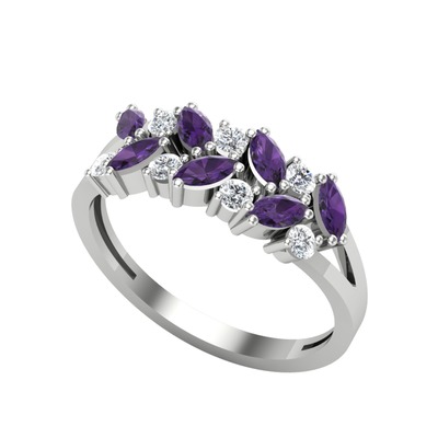 Ametist ve pırlanta 925 ayar gümüş yüzük (0.252 karat)