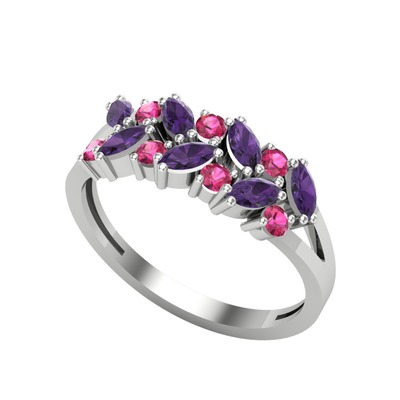 Ametist ve rodolit garnet 14 ayar beyaz altın yüzük