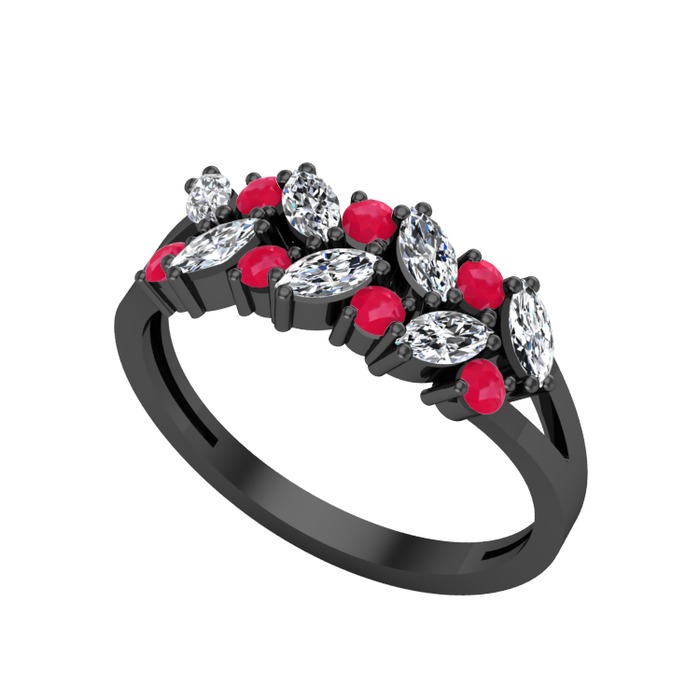 Beyaz zirkon ve kök yakut 925 ayar siyah rodyum kaplama gümüş yüzük