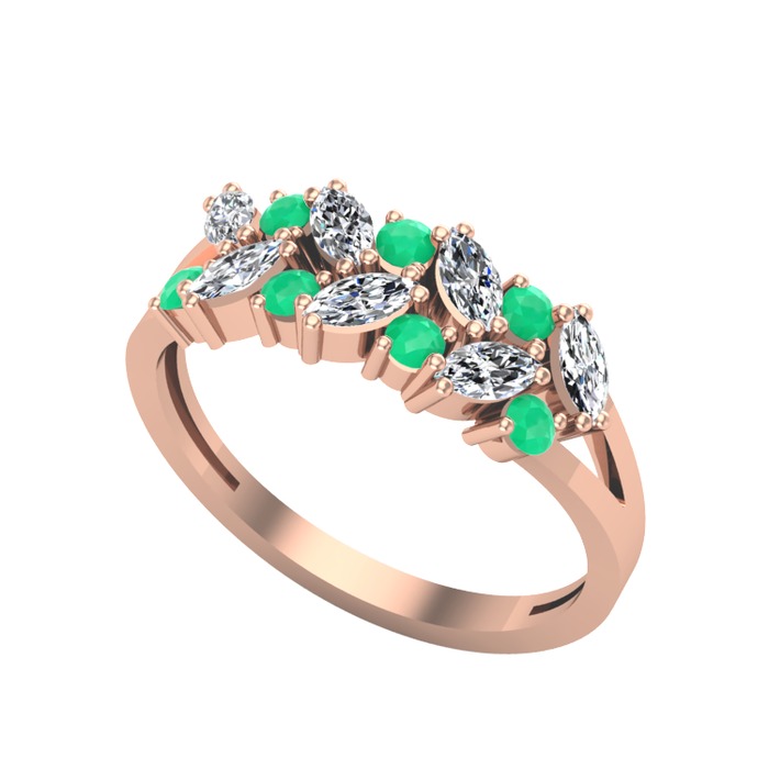 Beyaz zirkon ve kök zümrüt 8 ayar rose altın yüzük
