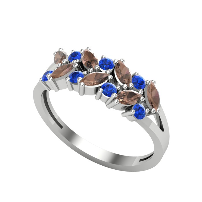 Dumanlı kuvars ve lab safir 18 ayar beyaz altın yüzük