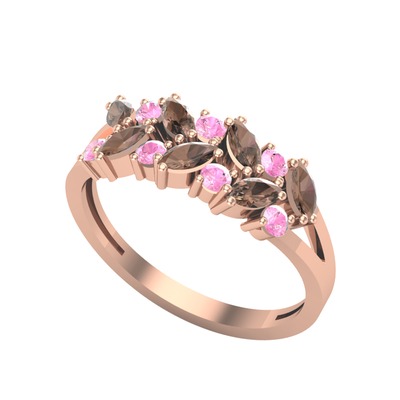 Dumanlı kuvars ve pembe kuvars 14 ayar rose altın yüzük