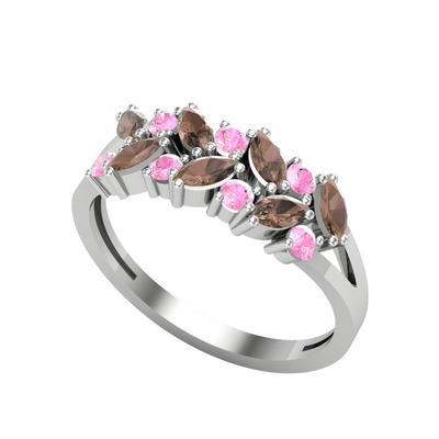 Dumanlı kuvars ve pembe kuvars 925 ayar gümüş yüzük