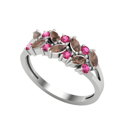 Dumanlı kuvars ve rodolit garnet 18 ayar beyaz altın yüzük