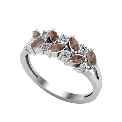 Dumanlı kuvars ve swarovski 925 ayar gümüş yüzük