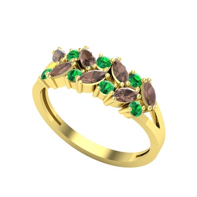 Dumanlı kuvars ve yeşil kuvars 14 ayar altın yüzük